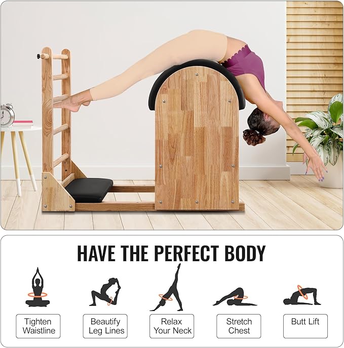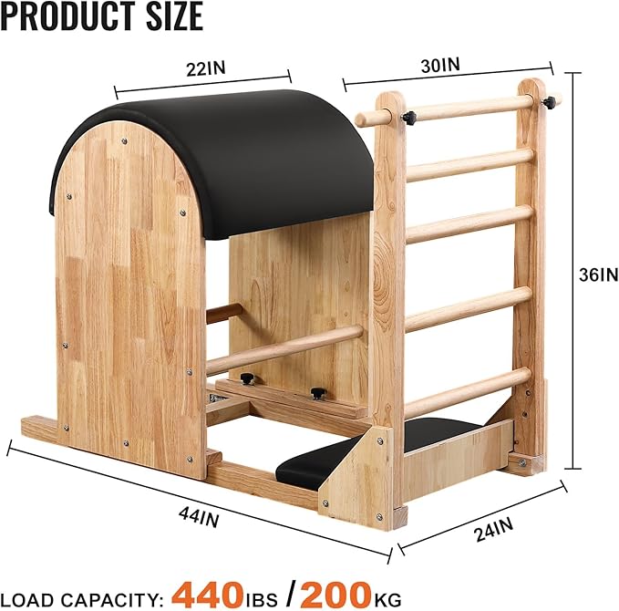 • 【Adjustable Sliding Base】- With its adjustable sliding base, the Pilates Ladder Barrel accommodates individuals with different torso and leg lengths, ensures that everyone can comfortably engage in a wide range of exercises.